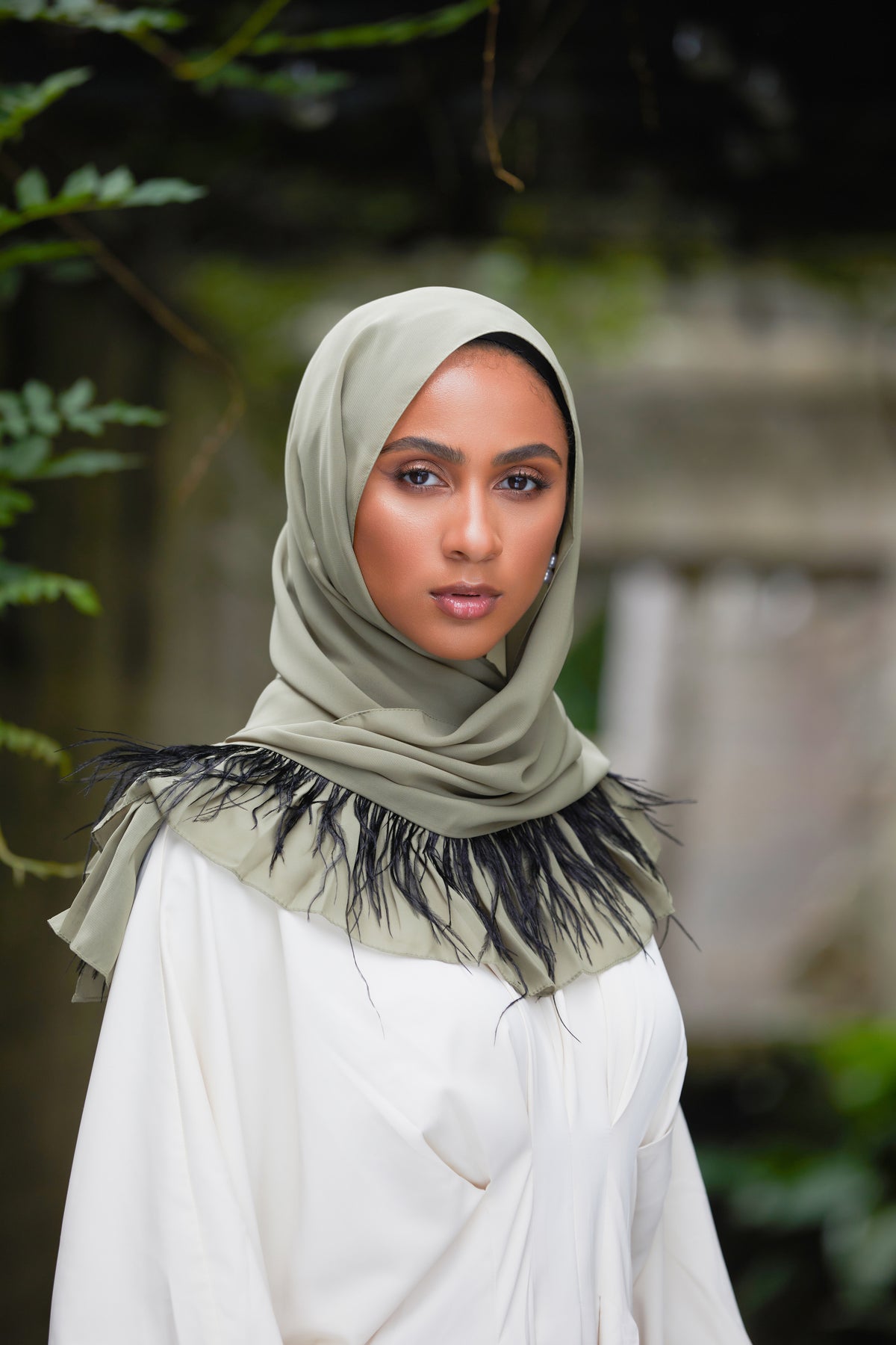 Our bestselling ruffle hijab, now with a feathery twist! Made for the glamorous woman just like you, our Noura hijab is made from the most light, airy, buttery-soft chiffon fabric that flows and drapes in an effortless manner.